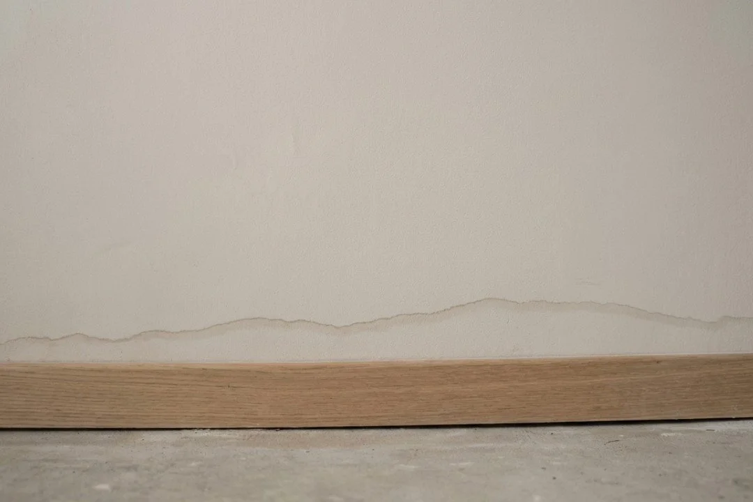 Tide marks along the bottom of ground floor walls
