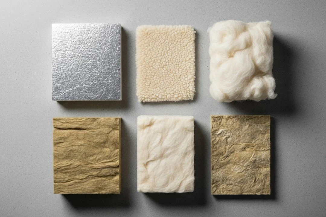 There are loads of options. Mineral wool is common, foam boards work well in tricky spots, natural fibres like sheep’s wool are eco-friendly, and recycled materials are an option too.